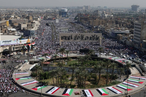 Milhares de manifestantes pró-Palestina saem às ruas de Bagdad