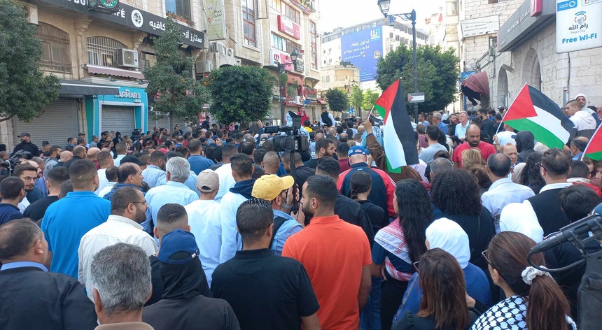 Palestinianos em protesto na Cisjordânia