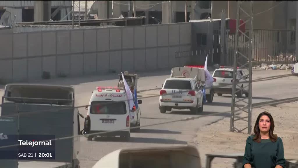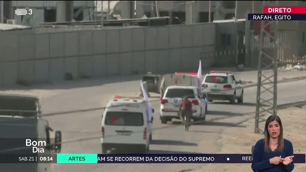 A televisão estatal egípcia mostrou vários camiões a passarem pelos enormes portões do posto fronteiriço, no 15.º dia da guerra entre Israel e o movimento islamita Hamas, no poder em Gaza, depois de toneladas de ajuda se amontoarem há dias à espera de serem encaminhadas para os 2,4 milhões de habitantes de Gaza, metade dos quais crianças, que estão sem água, eletricidade ou combustível.