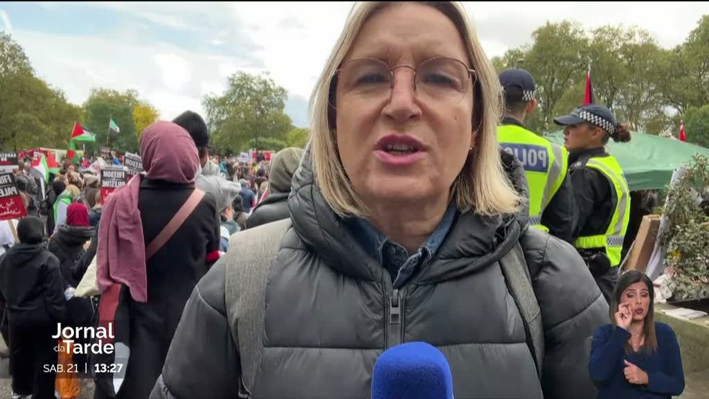 Polícia britânica confirma 100 mil pessoas em manifestação pró-Palestina em Londres