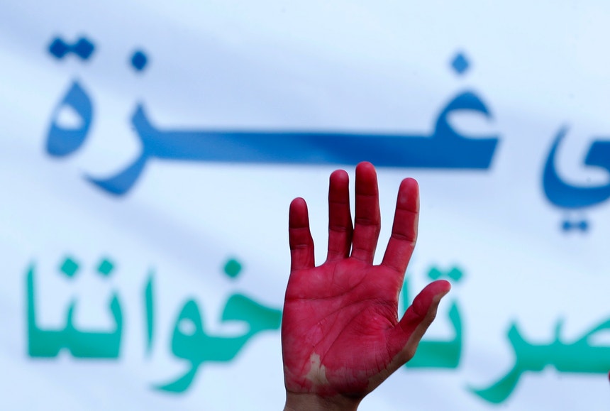 Palestinianos em protesto contra ofensiva israelita em Gaza