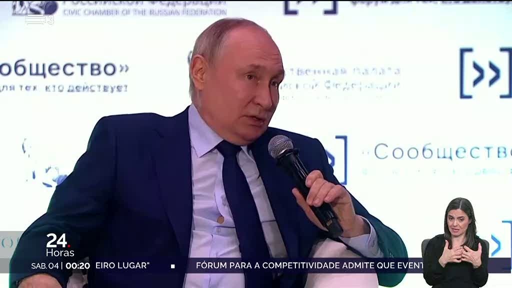 O presidente russo acusa o Ocidente de estar a apoiar Israel, ao mesmo tempo que incita tumultos antissemitas na Rússia. Vladimir Putin acrescenta que qualquer um ficaria indignado com imagens de crianças ensanguentadas em Gaza.