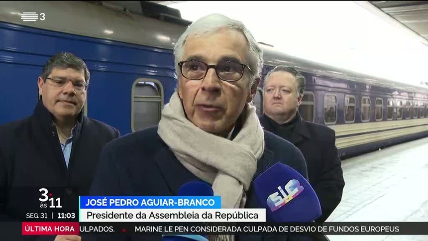 O Presidente da Assembleia da República visita Kiev. Aguiar-Branco chegou na manhã desta quarta-feira à capital ucraniana, onde foi recebido pelo homólogo, Ruslan Stefanchuk.