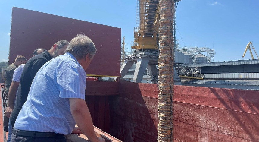 O secretário-geral da ONU esteve na manhã desta sexta-feira no porto de Odessa, no sul da Ucrânia, onde testemunhou o retomar das atividades de exportação de cereais.