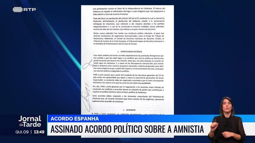 Não há registo de imagens, até agora, mas há um documento assinado entre o PSOE e o partido de Carles Puigdemont, o Juntos pela Catalunha.