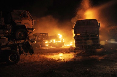 No vizinho Paquistão militantes locais atacaram um comboio de camiões que levava abastecimentos para as tropas no Afeganistão, matando sete pessoas e incendiando duas dezenas de veículos