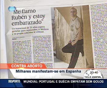 Mundo Homem espanhol grávido de gémeos Espanha ficou a saber que uma mulher que mudou de sexo está agora grávido. RTP / VER MAIS PUB