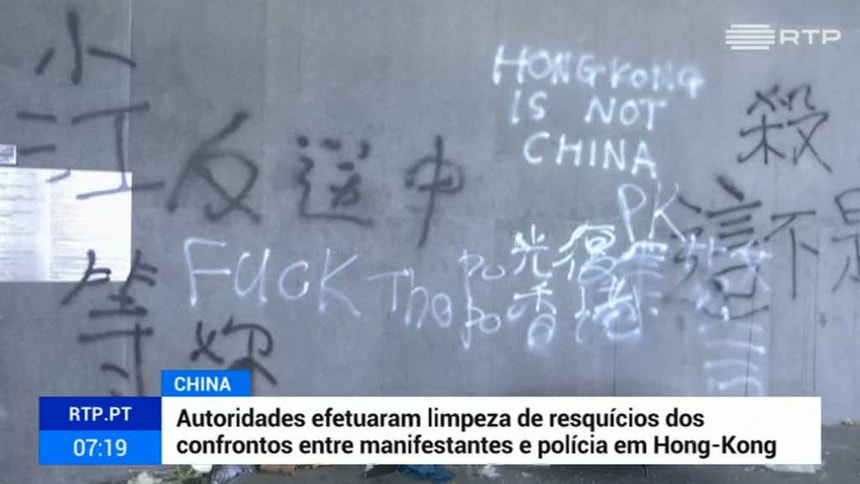 Após longos protestos em Hong Kong, começou a limpeza das ruas. Vidros do edifício do conselho legislativo ficaram partidos e nas paredes foram escritas palavras de ordem como: "a China não é Hong Kong".