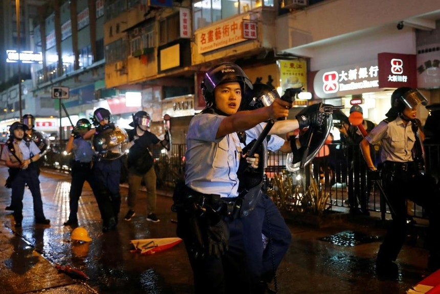 A polícia de Hong Kong disparou hoje pelo menos um tiro depois de manifestantes pró-democracia terem atacado agentes com paus e varas, e usou gás lacrimogéneo para dispersar um grupo em protesto numa rua central da cidade.