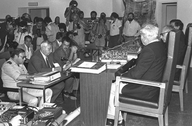 O então ministro da Defesa israelita procurou justificar-se apontando o dedo aos aliados falangistas de Israel, que foram verdadeiramente os perpetradores dos massacres. Mas também ficou estabelecido, sem margem para dúvidas, o facto de ter sido o Exército israelita a fazer entrar os entrarentraros falangistas nos dois campos de refugiados. Forças israelitas colocadas nos acessos aos campos aí permaneceram, esperando simplesmente que o massacre estivesse concluído e recusaram-se a atender aos pedidos de socorro de mulheres palestinianas que a elas se dirigiram.