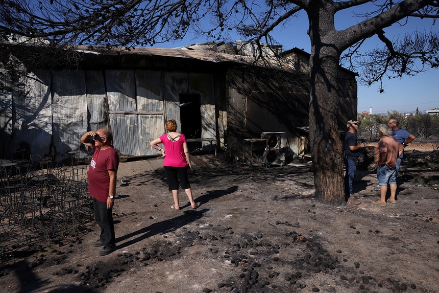 Houve ainda registo de 66 feridos na sequência deste incêndio, incluindo cinco bombeiros, na sequência daquele que já é considerado o pior incêndio florestal do ano na Grécia e que começou no último domingo perto de Varnava, a cerca de 40 quilómetros norte de Atenas. Na segunda-feira, os ventos fortes e as altas temperaturas levaram as chamas rapidamente para sul, na direção de capital grega, o que levou à evacuação de várias localidades e de três hospitais, por questões de segurança. Mais de 40 mil pessoas foram obrigadas a deixar as suas casas.
