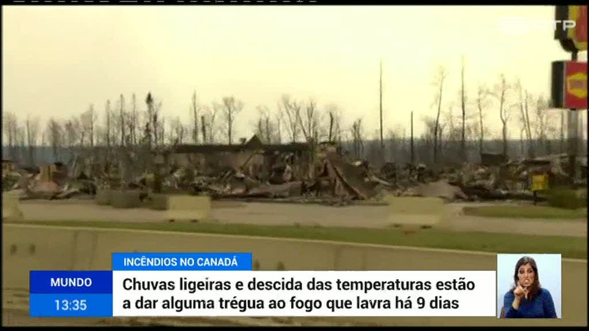 Chuvas ligeiras e uma descida da temperatura estão a dar alguma trégua no combate ao enorme incêndio no Canadá, na província de Alberta.