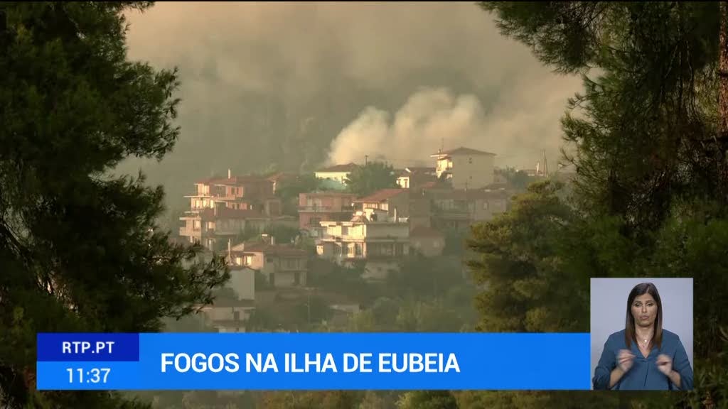 A Grécia continua a arder. O cenário mais preocupante é agora vivido na ilha de Eubeia, a segunda maior do país. Uma vez mais, centenas de pessoas tiveram de ser retiradas de barco, em fuga das chamas