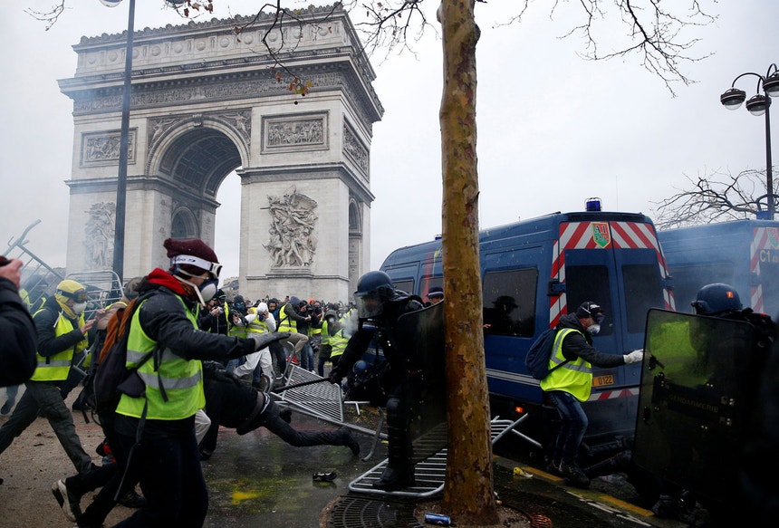 A polícia tem utilizado gás lacrimogéneo contra os protestantes que se mostram violentos ou tentam passar as barreiras físicas impostas pelas autoridades. Os incidentes com a polícia permanecem nos Campos Elíseos e ruas adjacentes. Os "coletes amarelos" levam a cabo o terceiro dia de ação nacional de protesto.