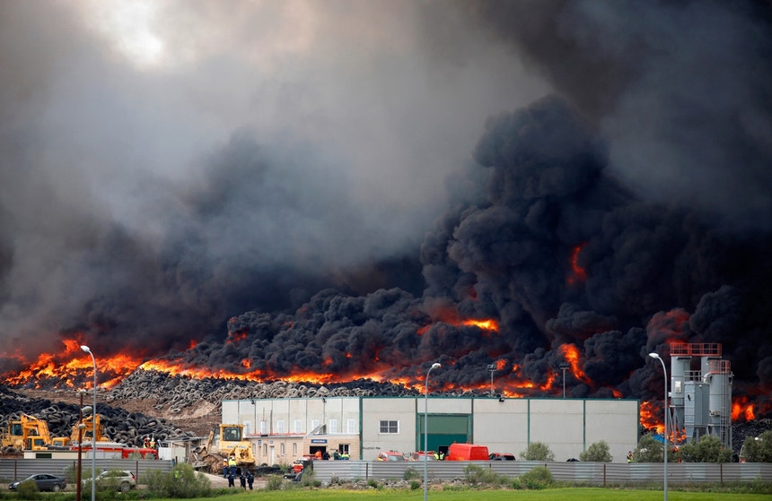 Incêndio em Espanha consome maior cemitério de pneus da Europa