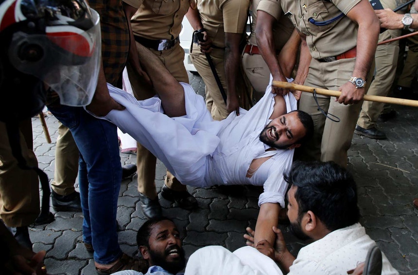 Em consequência, os conservadores hindus paralisaram a cidade de Kerala, com a interrupção dos transportes e forçaram o encerramento do comércio. O protesto foi apoiado pelos principais partidos indianos, o Partido do Povo Indiano, do primeiro-ministro Narendra Modi, e o rival Partido do Congresso.