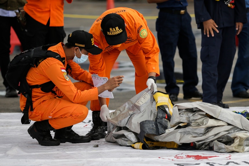 Segundo um porta-voz da polícia de Jacarta, foram já recolhidos dois sacos de objetos por parte da equipa de busca e resgate.