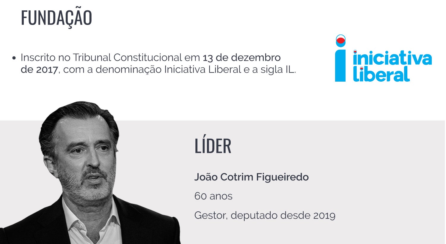 O presidente do partido, João Cotrim Figueiredo, é de novo cabeça de lista pelo círculo de Lisboa, seguido de Carla Castro, 43 anos, economista e doutorada em gestão que coordena o Gabinete de Estudos da Iniciativa Liberal, e ainda de Rodrigo Saraiva, 45 anos, consultor de comunicação, atualmente chefe de gabinete no Parlamento.