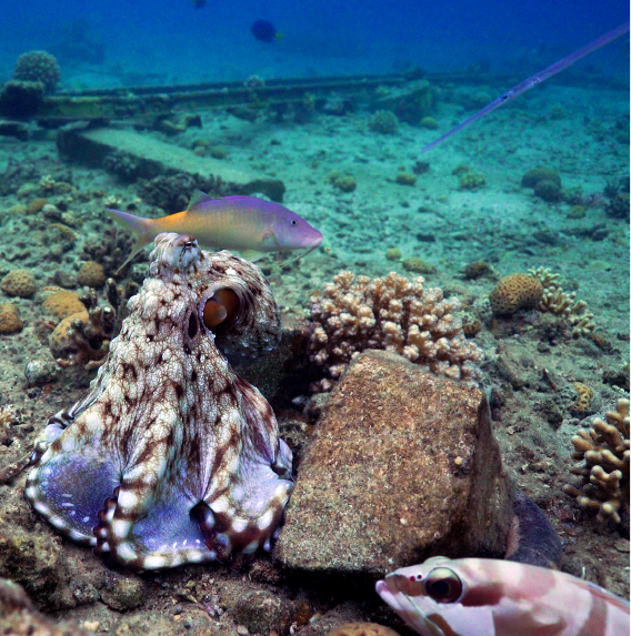 Este trabalho surgiu durante um trabalho de campo sobre as interações entre polvos e peixes em caça cooperativa realizado no âmbito de um projeto financiado pela National Geographic e pela PADI, e está exposto na publicação cientifica ESA- Ecological Society of America.