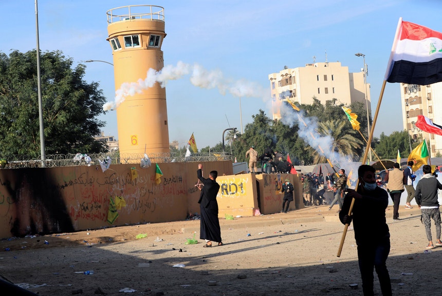 Na terça-feira, milhares de manifestantes atacaram a embaixada dos EUA em Bagdade, no Iraque, queimando bandeiras, derrubando câmaras de vigilância e gritando "morte à América", após ataques mortais americanos a um grupo armado iraquiano pró-iraniano.