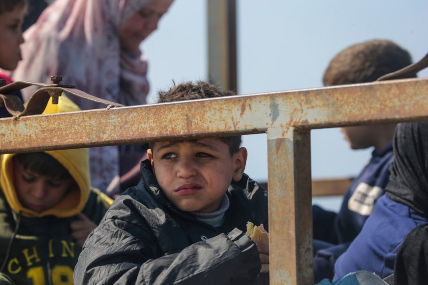Criança palestiniana a tentar fugir do norte da Faixa de Gaza. Mohammed Saber - EPA via Lusa
