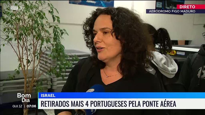 - Oito cidadãos portugueses e 14 de outras nacionalidades chegaram ao início da manhã desta quinta-feira ao aeródromo de Figo Maduro, em Lisboa. O avião militar partiu ao início da madrugada de Chipre. A operação de repatriamento dos portugueses que estavam em Israel dever agora ficar concluída;