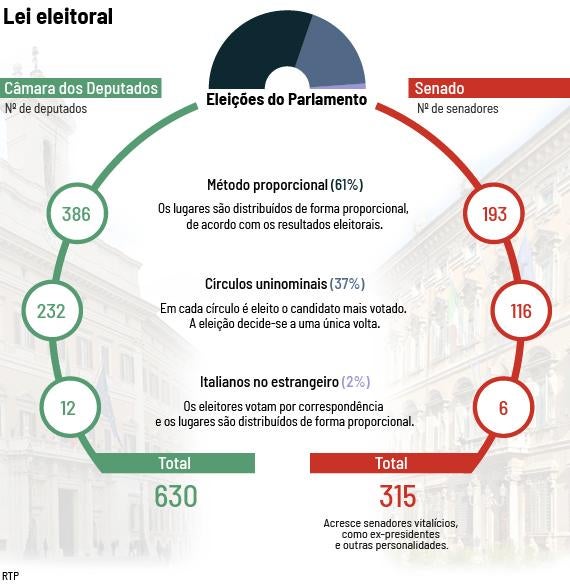 A lei eleitoral italiana não está inscrita na Constituição e tem sido alterada sucessivamente ao longo dos anos. A versão atual foi redigida em 2017 e resulta de um acordo entre o centro-direita e o centro-esquerda. O Movimento Cinco Estrelas votou contra e é, dizem os analistas, o principal prejudicado com este sistema.