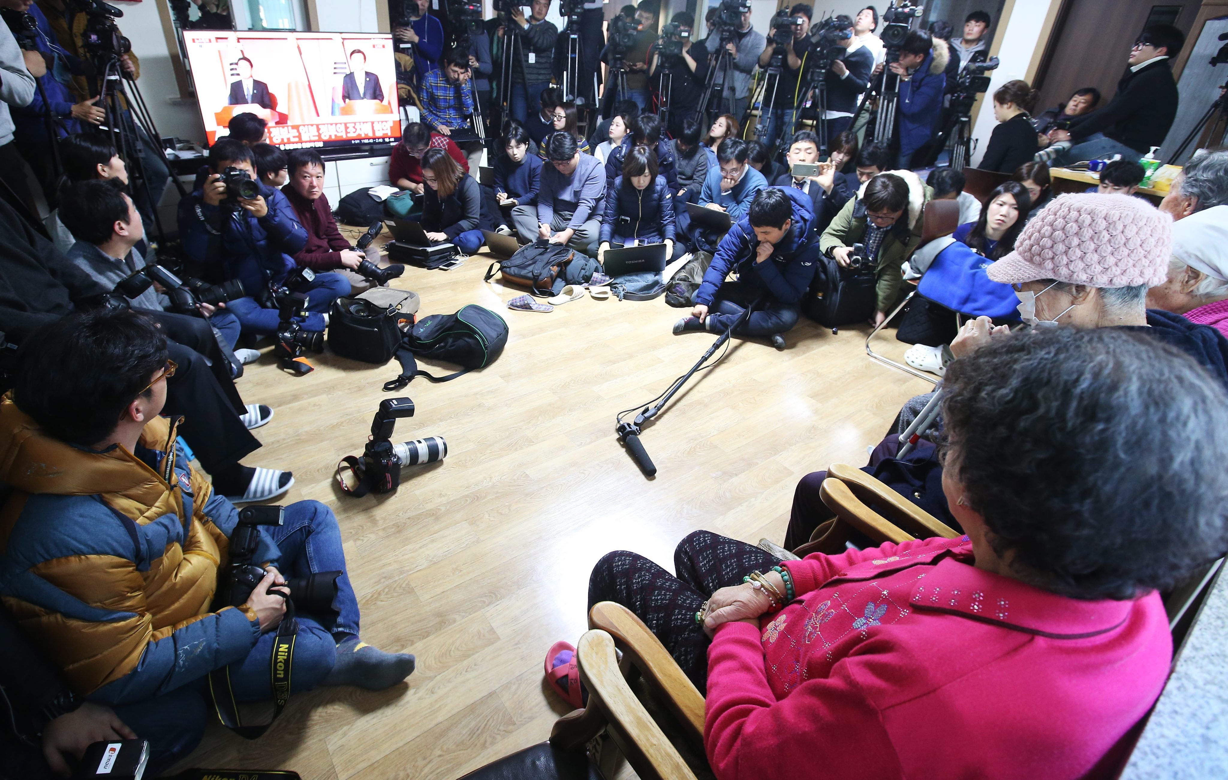 Yonhap, EPA – Antigas “mulheres de conforto” assistem às notícias sobre o acordo entre Japão e Coreia do Sul