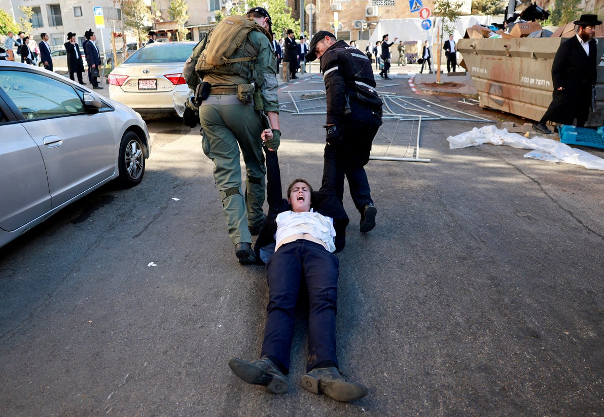 Polícias retiram à força os manifestantes ultraortodoxos, junto ao centro de recrutamento da IDF | Ammar Awad - Reuters