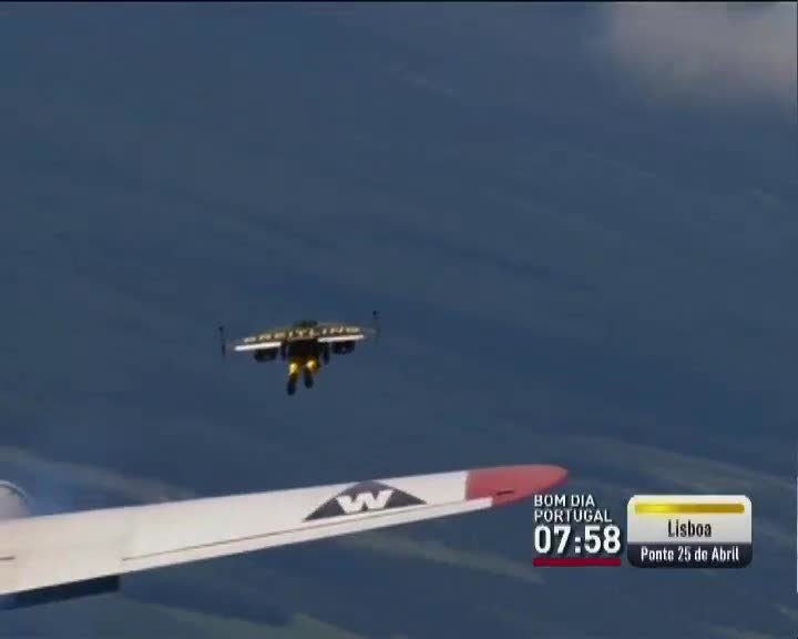 "Jetman" voou com asas munidas de jactos ao lado de bombardeiro