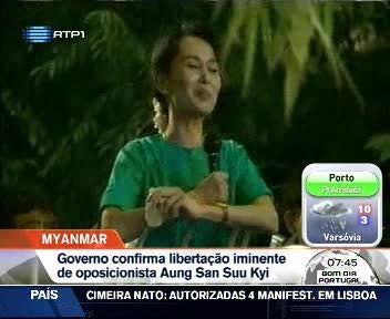 A líder oposicionista birmanesa Aung San Suu Kyi poderá ser libertada nas próximas horas, de acordo com fontes do seu partido, informações que perdem força com declarações de responsáveis birmaneses apontando para o fim de 19 anos da prisão da Nobel da Paz para os próximos dias. O período de prisão domiciliária de Suu Kyi termina sábado e a junta militar no poder passa para já a mensagem de que não há razões para prolongar o cativeiro.