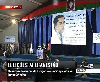 20 de Outubro: segundo os resultados finais publicados pela Comissão Eleitoral Independente, Hamid Karzai reúne 49,67 por cento dos votos, ficando aquém da fasquia necessária para evitar uma segunda volta; o antigo ministro dos Negócios Estrangeiros Abdullah Abdullah conquista 30,59 por cento dos votos.