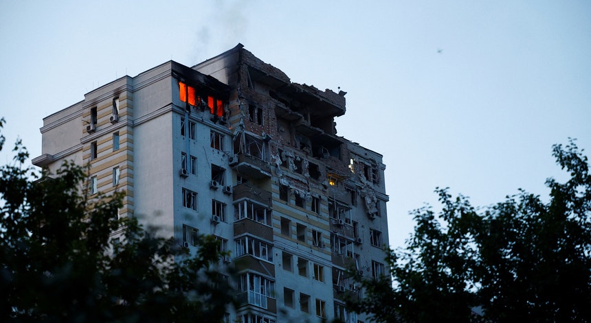Os dois andares superiores do edifício ficaram destruídos e é possível que estejam habitantes sob os escombros, disse a Administração Militar de Kiev.