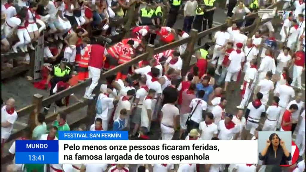 Em Espanha, a famosa largada de touros de San Fermín já deixou feridas, pelo menos, 11 pessoas. Duas delas com gravidade.