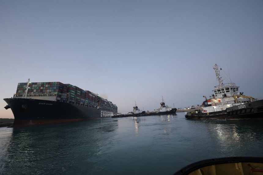 O navio Ever Given, com 400 metros e 200 mil toneladas, foi removido da margem, onde permanecia encalhado há seis dias. Para aliviar a carga, funcionários do Canal retiraram cerca de 20 mil contentores.