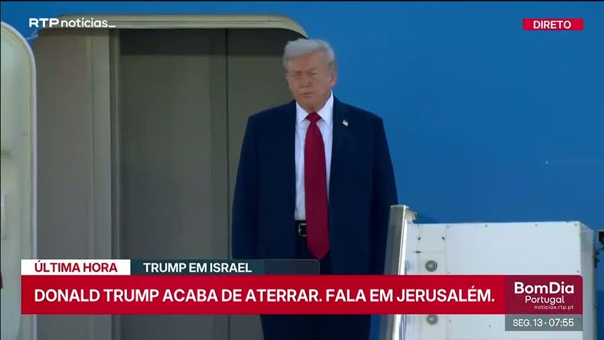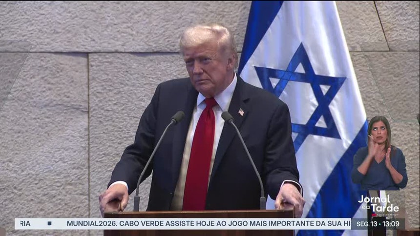 Donald Trump discursa perante o parlamento de Israel antes de seguir para o Egito para uma cimeira destinada a criar condições para uma paz duradoura em Gaza.