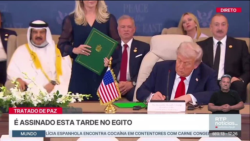 "Vamos assinar um documento que vai definir muitas regras e regulamentos e muitas outras coisas. É muito abrangente", disse Trump no início da cimeira, acrescentando que o cessar-fogo entre Israel e o Hamas “está realmente a funcionar incrivelmente bem”.