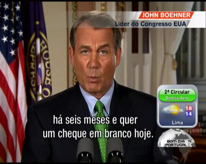 Na falta de acordo político para elevar o teto da dívida pública até 2 de agosto, os Estados Unidos entrarão em incumprimento e o Governo terá de escolher entre o pagamento da dívida e as despesas correntes. O líder do Congresso diz que não pode tolerar mais despesa pública à custa dos contribuintes e acusa o Presidente de querer um cheque em branco.