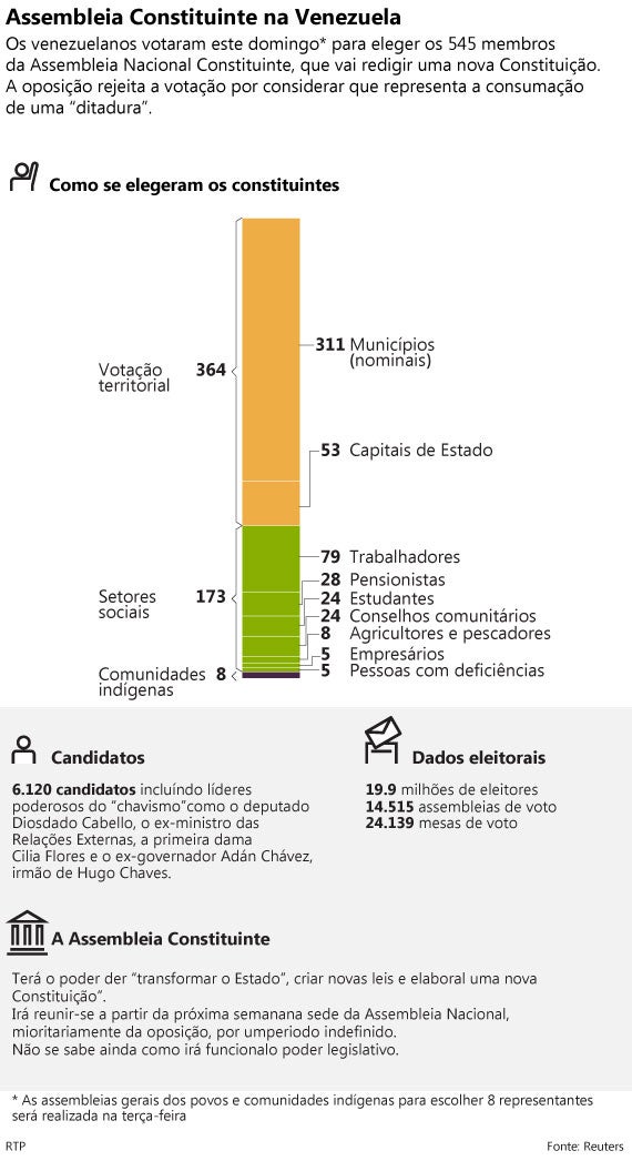 Maduro anunciou mesmo que a Assembleia Constituinte vai criar uma comissão pela verdade, justiça, reparação das vítimas e paz, que terá como primeira missão levantar a imunidade dos deputados oposicionistas e ditos dissidentes do chavismo.