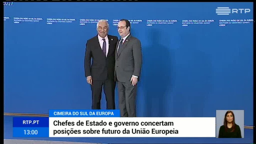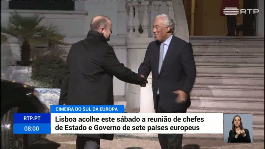 Confirma-se um ligeiro atraso nos trabalhos da cimeira dos líderes do sul da Europa. A agenda do encontro abriu a edição deste sábado do Jornal da Tarde.