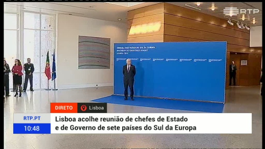 Desta feita, o presidente do Governo espanhol está em Lisboa, onde se senta à mesa dos trabalhos com os presidentes de Chipre e de França, Nikos Anastasiades e François Hollande, e os primeiros-ministros de Malta, Joseph Muscat, da Grécia, Alexis Tsipras, de Itália, Paolo Gentiloni, e de Portugal.
