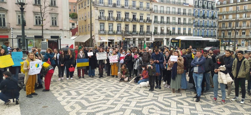 Lisboa. Uma centena de pessoas em manifestação de solidariedade com a Ucrânia