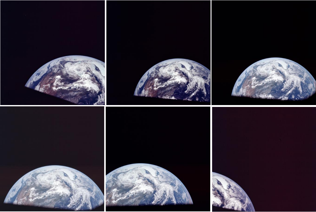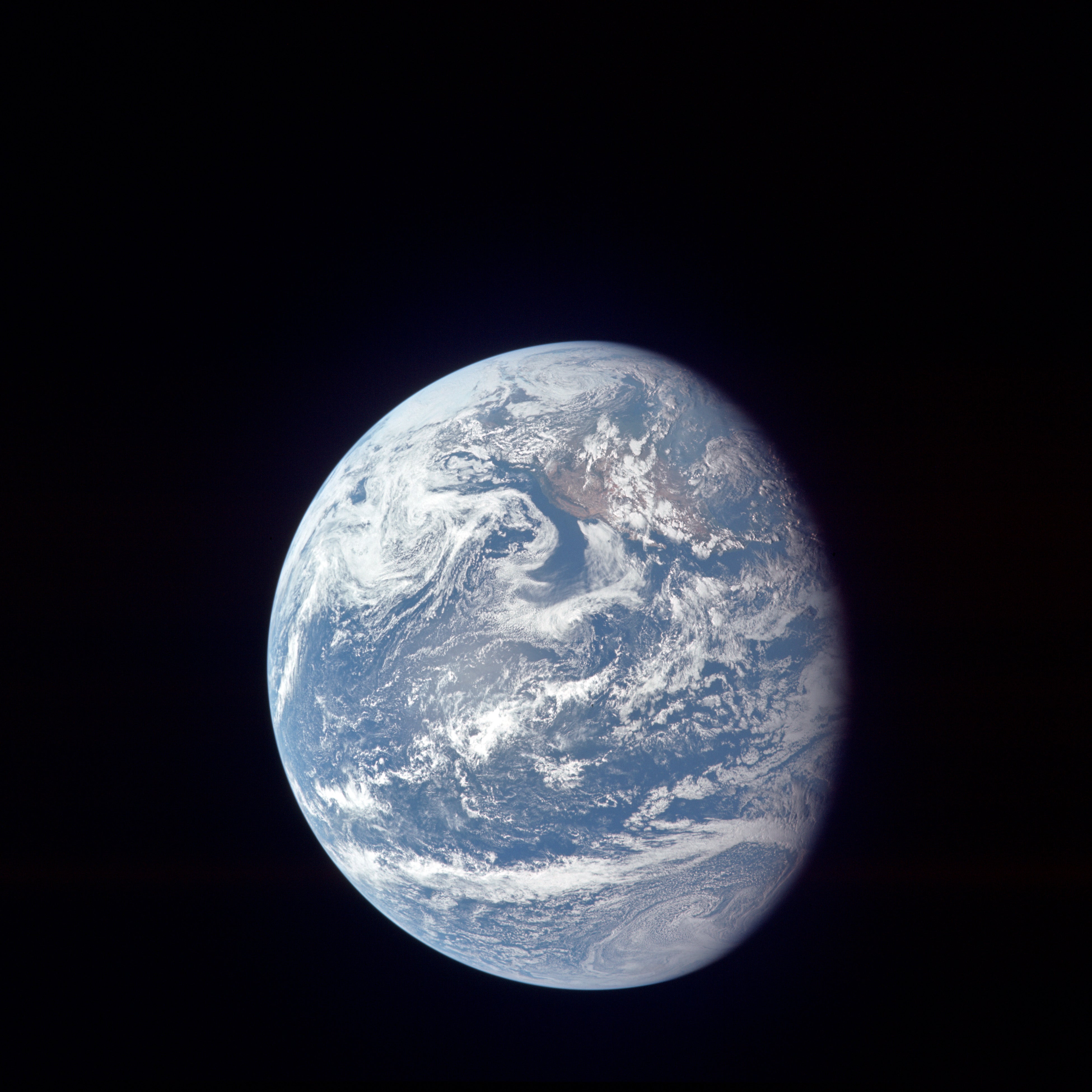 As comunicações entre os astronautas e a Terra deixaram, por instantes, de versar o estado do equipamento e o voo em direção à Lua. Dez horas e meia após a saída de Cabo Canaveral, as atenções viravam-se para as primeiras imagens a partir do espaço e da visão que se obtinha a partir do Módulo de Comando Columbia.