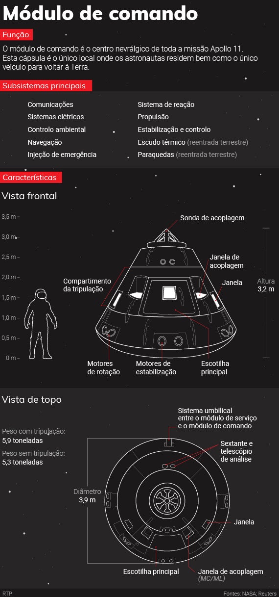 Formado por duas partes (Módulo de Comando de formato cilíndrico e de cor prateada e Módulo de Serviço, capsula cónica], o Módulo de Comando e Serviço Apollo (MCS) foi o veículo espacial que viajou e transportou com sucesso Neil Armstrong, Edwin Aldrin e Michael Collins, os três astronautas que realizaram a primeira alunagem.