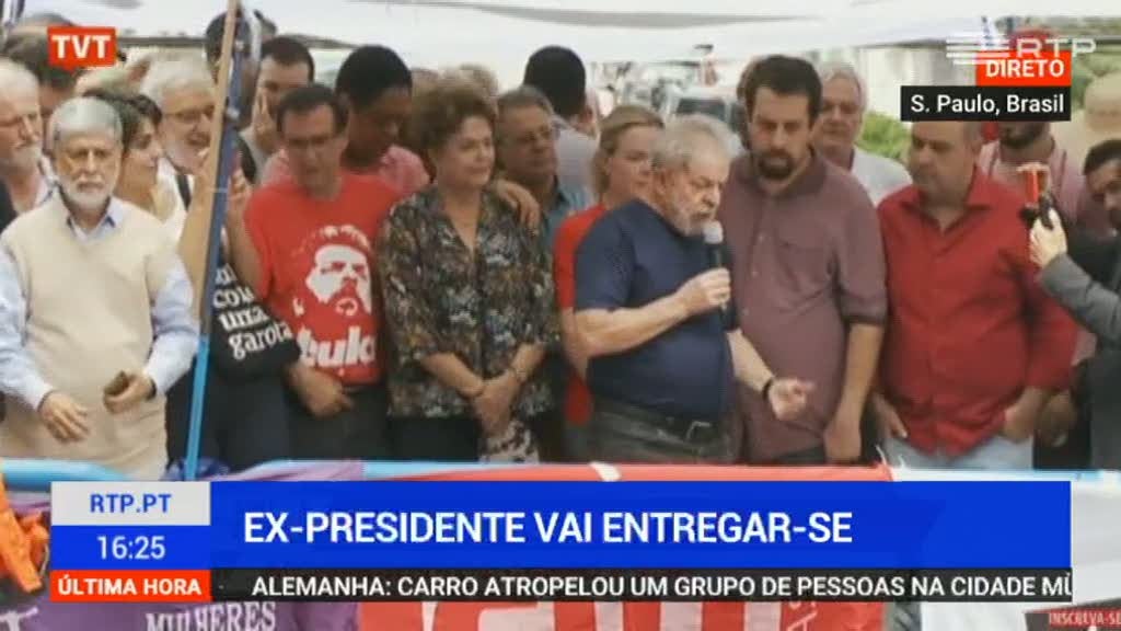 O ex-presidente do Brasil entregou-se às autoridades no final de uma missa de homenagem à sua mulher, Marisa Letícia. Lula da Silva abandonou este sábado o Sindicato dos Metalúrgicos onde se encontrava desde quinta-feira. Junto à sede do sindicato, juntaram-se milhares de apoiantes, entre os quais Dilma Rousseff.