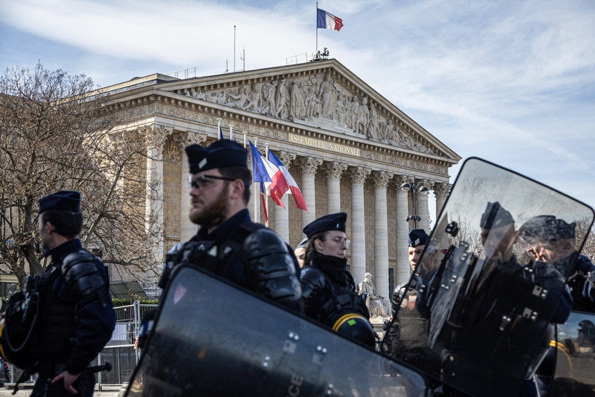 Na Place de la Concorde, perto da Assembleia Nacional, decorre uma manifestação contra a decisão do Governo. Jean-Luc Mélenchon, do partido França Insubmissa, considera que a aprovação desta lei sem a votação na câmara baixa representa o “colapso” da atua maioria parlamentar.