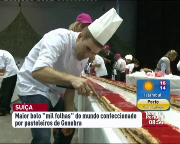 Foi confecionado na Suíça o maior "mil-folhas" do mundo, tem 1221 metros de comprimento e pesa 4200 quilos. Vinte e cinco pasteleiros e dezenas de voluntários participaram, em Genebra, na criação deste bolo gigante. O "mil-Folhas", que na Suíça se chama "Napoleão" foi cortado em 30 mil pedaços para ser vendido. O valor vai reverter a favor de ações de beneficência.
