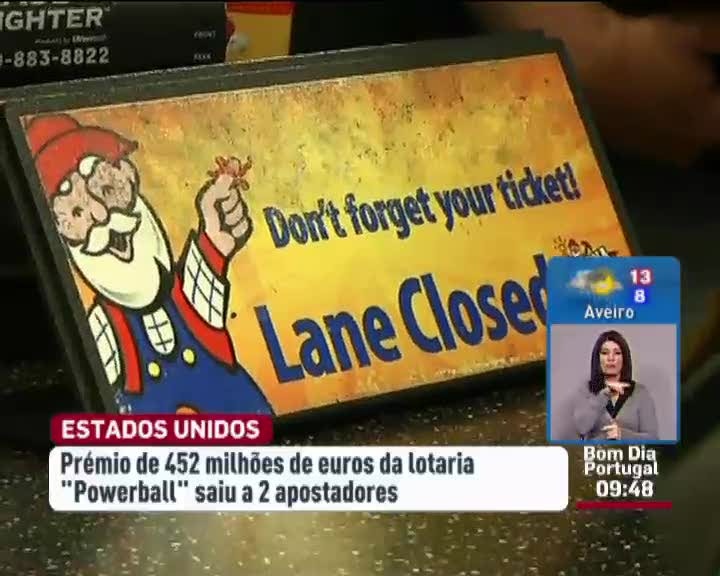 O maior jackpot de sempre do Powerball, a maior lotaria dos Estados Unidos, foi ganha por dois apostadores. Vão dividir a meias o equivalente a 452 milhões de euros. As casas que venderam os bilhetes vencedores vão receber cada uma um prémio de 38 mil e 500 euros.