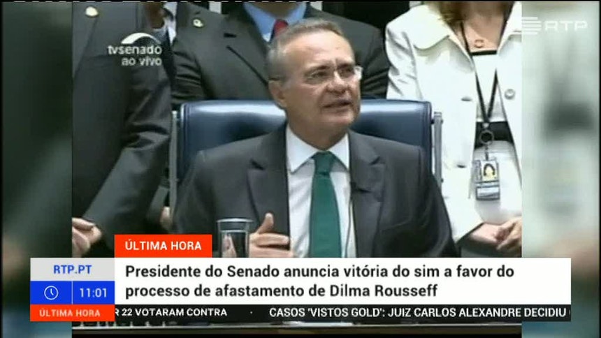 A Câmara alta do Parlamento brasileiro aprovou a impugnação da Presidente do Brasil com 55 votos a favor e 22 contra. Dilma Rousseff está oficialmente afastada da presidência nos próximos 180 dias.