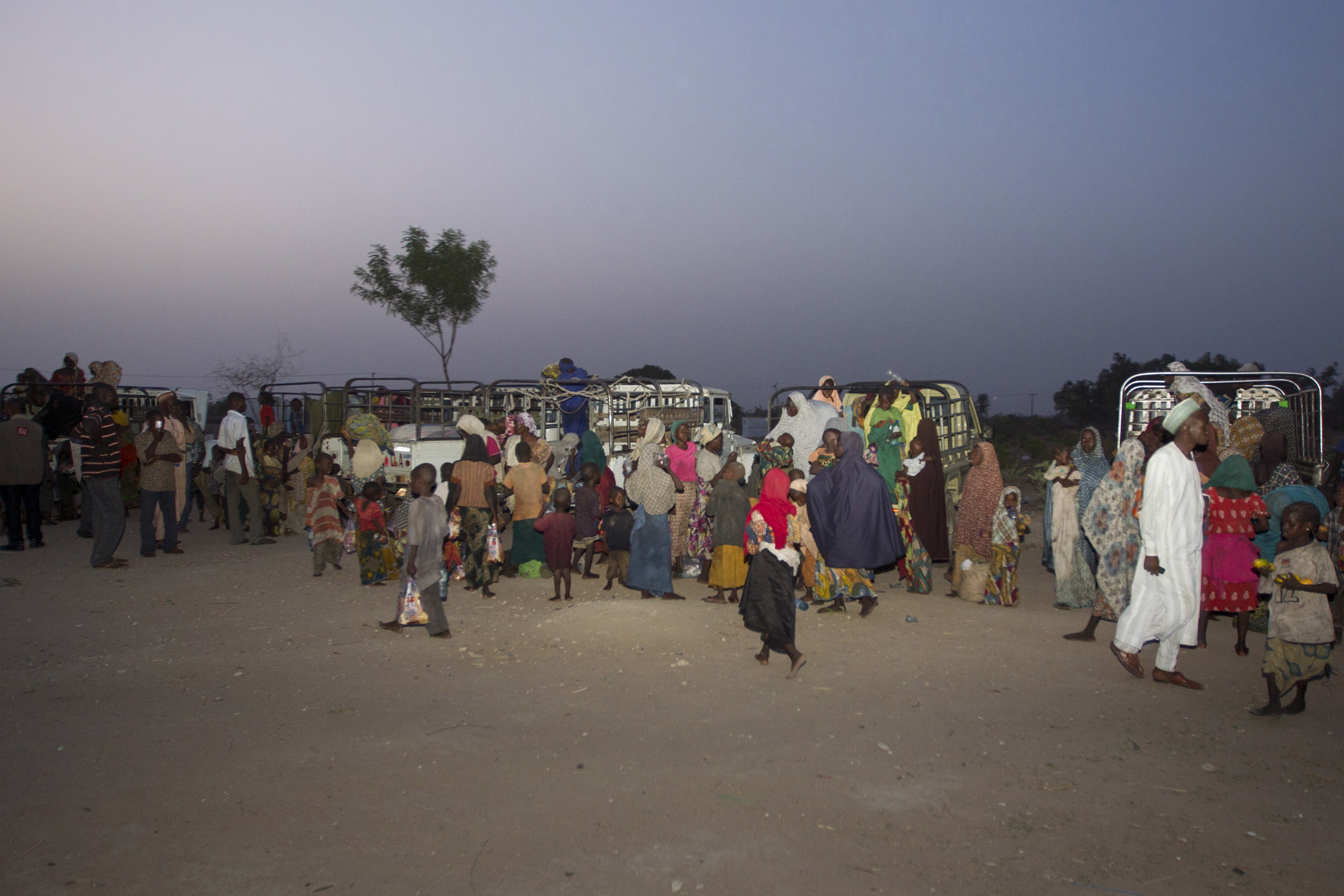 Mulheres e crianças viajaram durante três dias em camiões pela floresta da Sambisa, onde foram resgatadas, até o acampamento na cidade de Yola.
